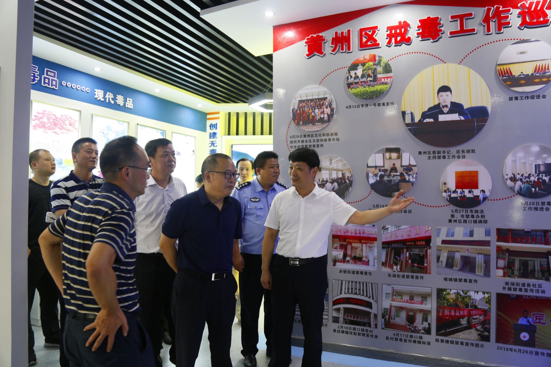 7月4日,省禁毒总队副总队长刘伯高、戒毒康复支队副支队长张威,市禁毒委副主任夏学明、张静一行来黄州区督办检查禁毒工作。区委副书记、区长胡凯,副区长、市公安局黄州分局局长吴春华参加活动。
