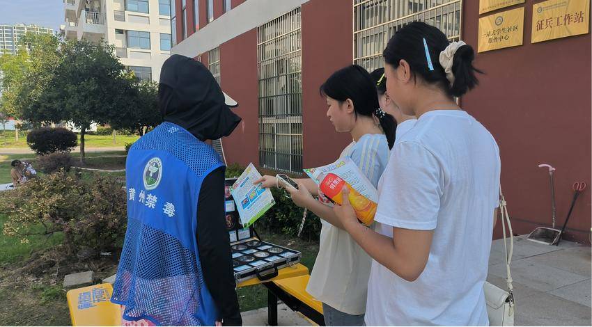 9月5日,黄州区南湖街道办事处社区戒毒康复中心在湖北黄冈应急管理职业技术学院开展“青春无毒,未来可期”主题禁毒宣传活动,为莘莘学子筑牢新学期的禁毒防线。