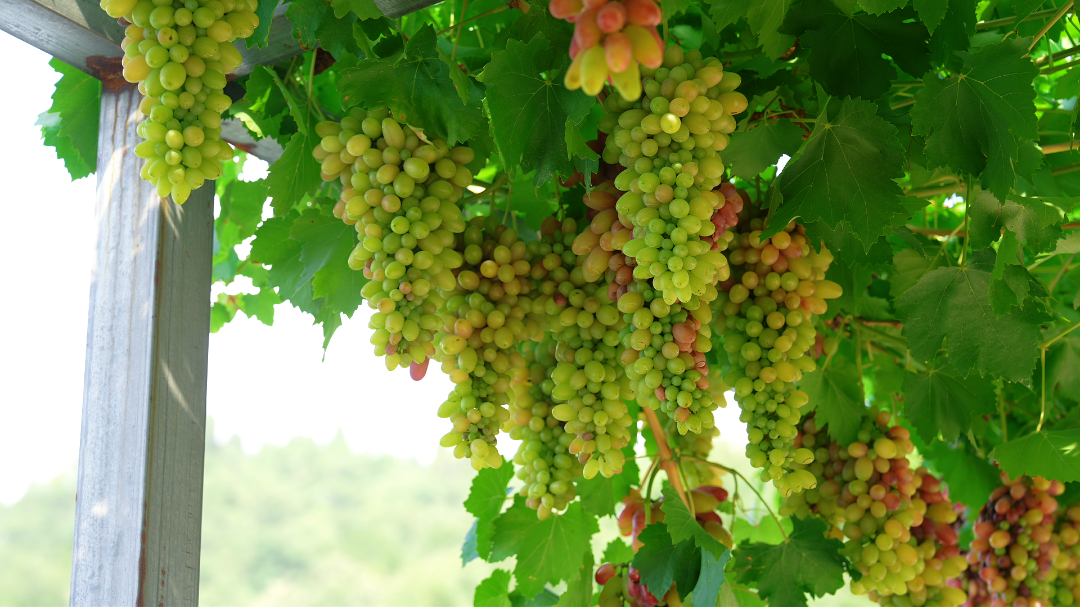 更是阳光玫瑰缀满藤架的透亮小弹珠