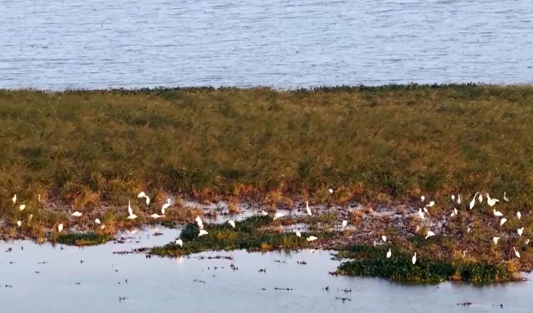 在黄州区陶店乡的赵家潭1800多亩的水面上,蓝色的光伏板整齐排列,在阳光下熠熠生辉。而比这更动人的风景,是盘旋在光伏板上空成群的飞鸟。据了解,在该生产区域,由于生态环境的优化,鸟类正越来越多地栖息于此,特别是白鹭,最多的时候有上万只。