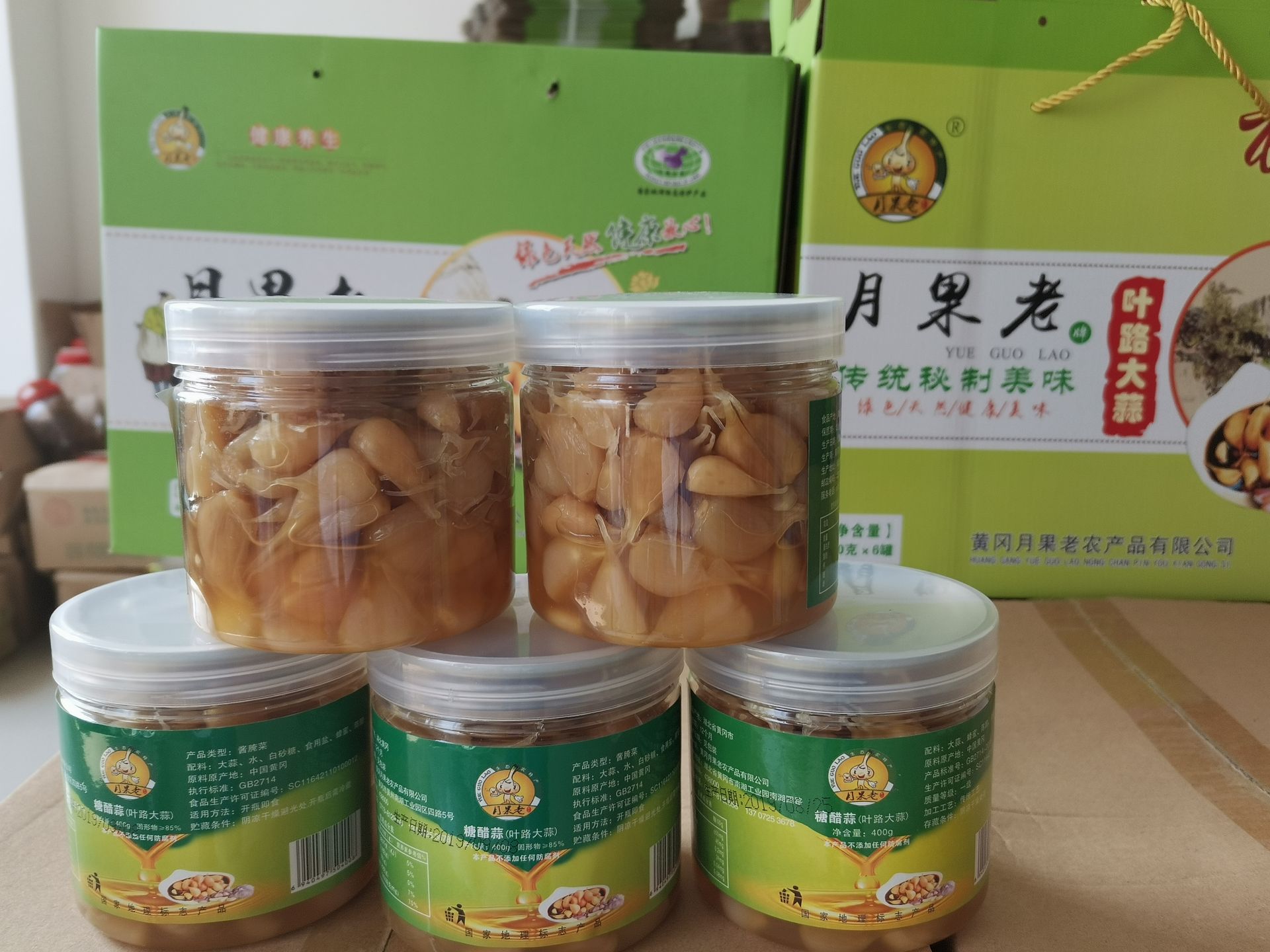 黄冈月果老农产品有限公司是黄冈市级重点龙头企业,其产品“月果老”叶路大蒜荣获第12届中国武汉农博会“金奖农产品”,2017年度“荆楚优品”,2018年度“黄冈地标优品”、“黄冈市十佳好网货”、“黄冈市最受消费者喜爱的特色优质农产品”等称号。该公司两条自动化生产线日加工蔬菜2万斤,原材料全部来源于旗下的湖北福耕农业投资有限公司叶路洲2700亩无公害蔬菜基地和区内外无公害蔬菜基地。产品不仅在黄商、中百仓储等设立了专卖柜,还开通了农夫电商。公司全部投产后,可实现年产值1.2亿元,利税1500万,提供就业岗位300个,辐射带动农户2000户种植蔬菜5000亩,实行订单生产,解决销售难题,增加农民收入,带动农民脱贫致富,推动农业提质增效。
