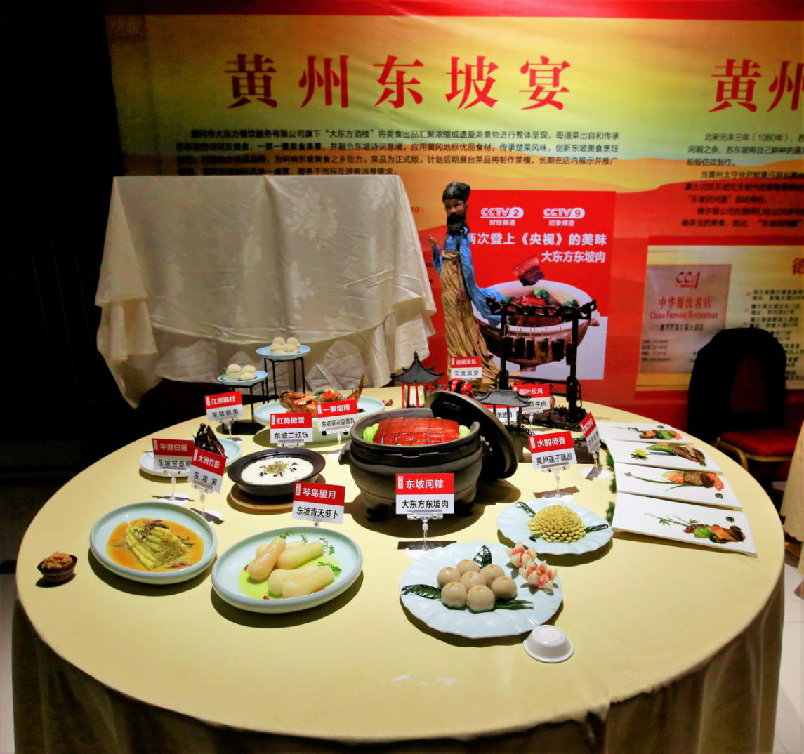 利用黄州萝卜、黄州豆腐、黄州鱼丸、黄州莲米等本地食材,结合东坡文化、黄州民间文化精心制作的地标优品宴,不仅精美绝伦,更让吃货们垂涎欲滴。邹佑元大师工作室制作的东坡肉、烧梅、东坡鱼丸,黄冈职业技术学院制作的手工鱼丸、东坡饼,大东方制作的东坡肉、黄州豆腐,德尔福制作的酱菜、卤菜,歌斯食品制作的蛋黄酥、雪媚饼,无一不展现了黄州的地方餐饮特色,让美食更加美味。