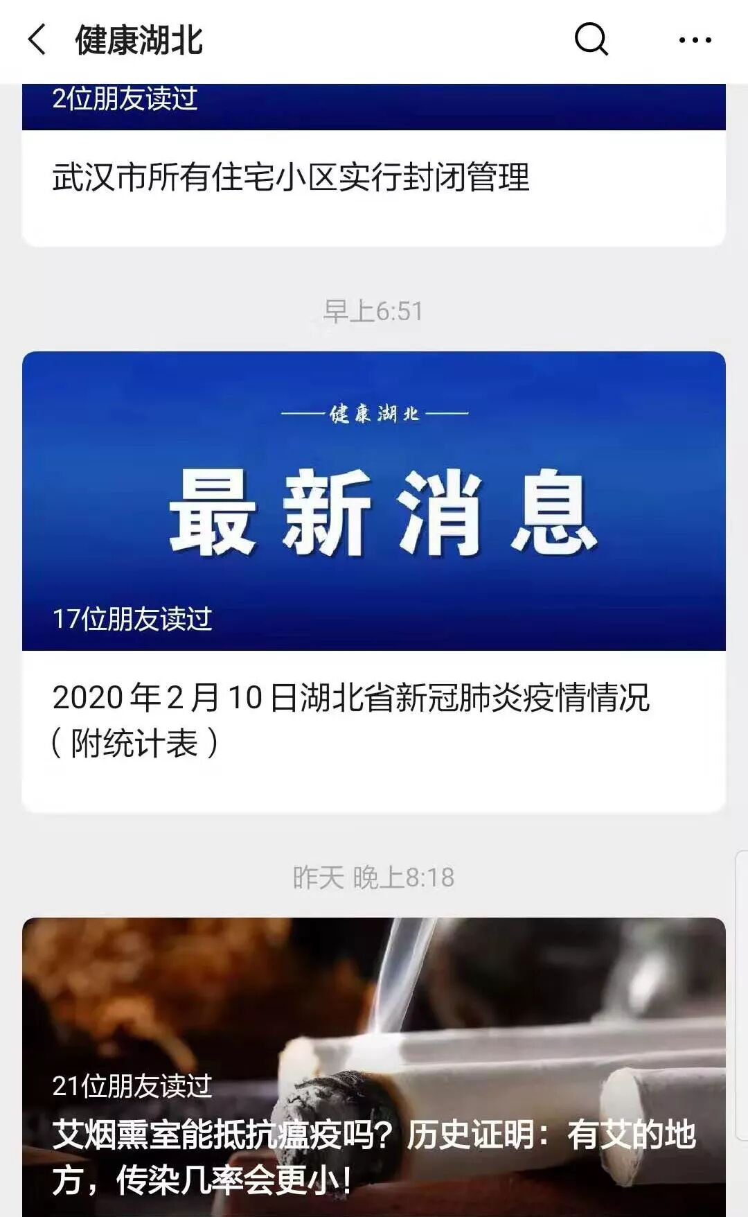 2月10日,湖北省卫生健康委员会官方微信公众号“健康湖北”刊发相关报道,推广使用艾烟熏室和使用中医疗法中的艾灸,这是继河南省推广艾灸、艾叶烟熏用于室内杀菌和个人健康防护之后,湖北卫生健康部门的正式推广。