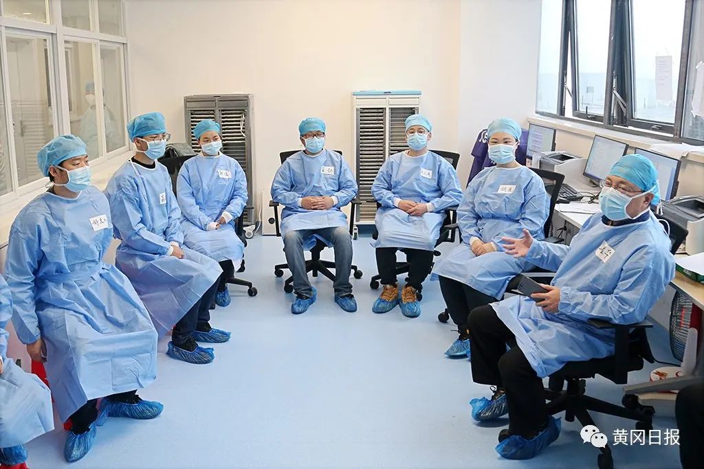 2月2日,在吴耀华的无惧前行、勇于逆行的行动感召之下,市中心医院10名麻醉科医生迅速集结插管小分队,吴耀华任队长。他领着队伍冲锋在战疫最前沿阵地、最高风险的地方,承担大别山区域医疗中心的插管工作。