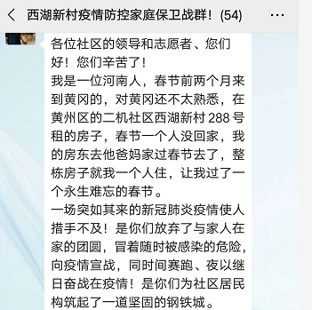 全面封锁时期,购买物资成为了留守老人们的“老大难”问题。疫情防控小队为了方便不会使用“接龙买菜”的老人们,在每次集中代购物资前都会电话给留守老人,询问是否需要什么物资,真正做到靠前服务,主动询问。“谁家没有老人呢,每个家庭都应该被好好守护。”在疫情防控中守护好每个家庭、每名群众不仅是这群党员志愿者们的坚守,也是这群党员志愿者们的承诺。