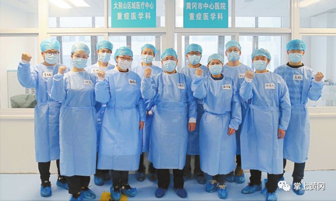 3月8日,黄冈市中心医院医护人员在大别山区域医疗中心重症医学科为黄冈加油。 记者 周伟 摄
