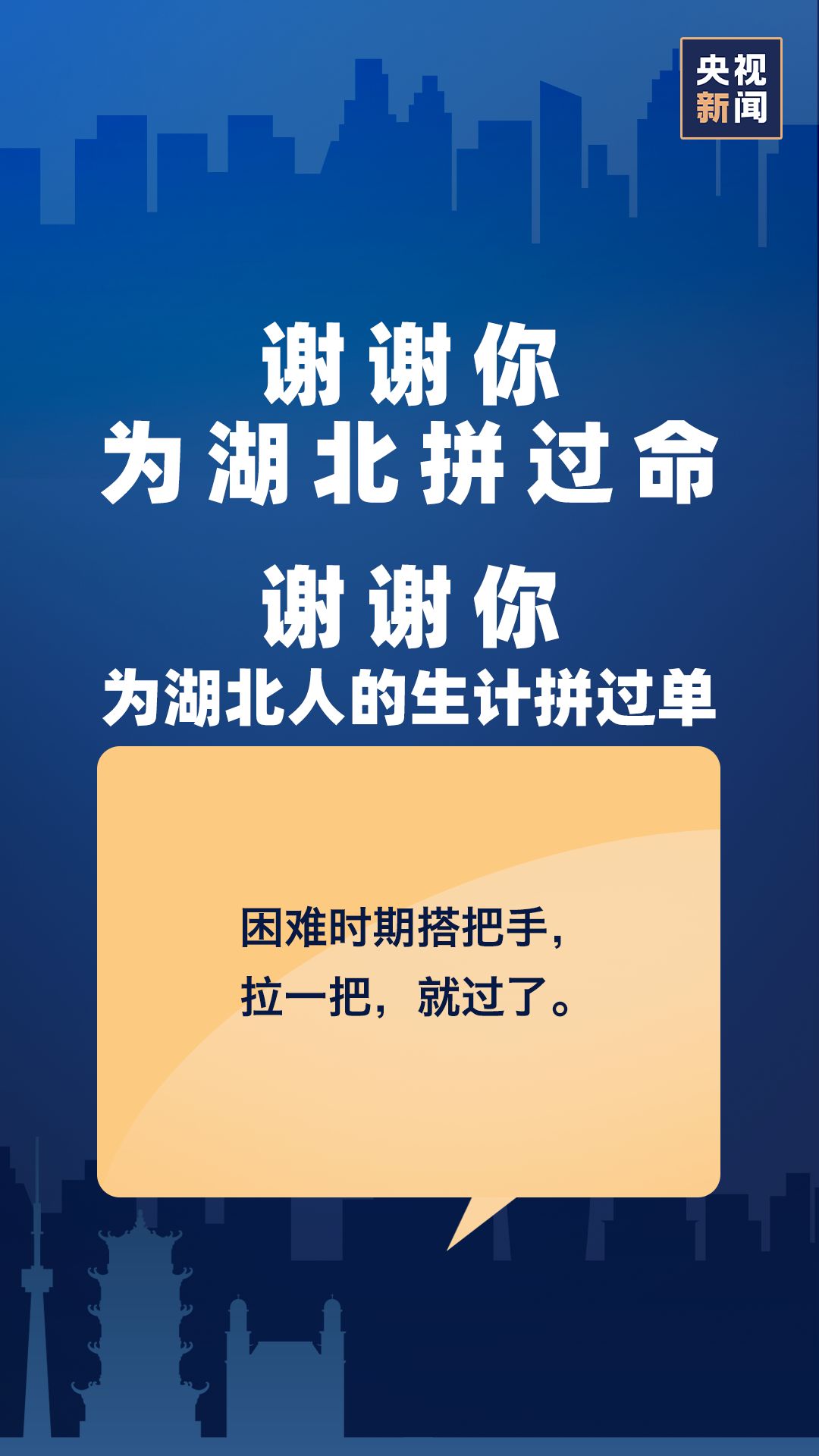 记得前些天有句话火了,就是送别援鄂医疗队时,大家都说谢谢你为湖北拼过命。今天,如果你“剁手”买了热干面,我还要说一句,谢谢你为湖北拼过单。大家一起搭把手,买“鄂”买起来。困难时期拉湖北一把,湖北也就归队了!