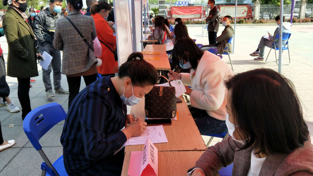 3月30日上午,在黄州区人社大楼门前举办的招聘会