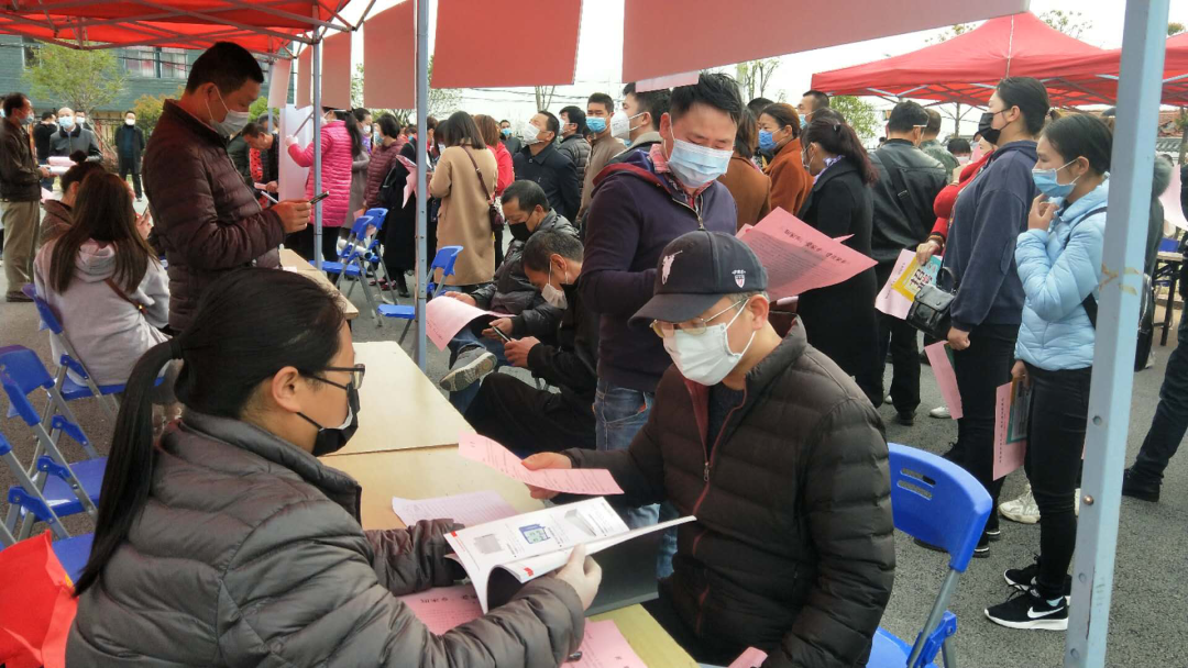 受新冠肺炎疫情的冲击,“招工难”、“用工荒”成了企业复工后的头号难题。为助力企业复工复产,引导本地劳动力就近就业,市区两级人社部门加强与企业的沟通,收集企业的用工信息,对市区劳动力和有就业需求人员进行摸底调查,为企业和求职者架起招聘与就业的“双向”桥梁。自3月25日起,市区人社部门在做好疫情防控工作的同时,组织企业进乡镇、入村社区,与劳动者面对面地交流,在黄州城区及堵城、陈策楼、陶店等乡镇共举办了7场服务重点企业用工招聘会,提供各类岗位8000个,7100余名求职者现场求职,2600余人顺利签约,加快黄冈城区企业复工复产。