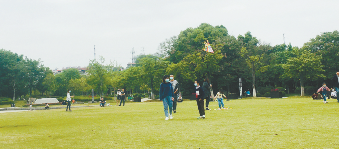 4月17日,在赤壁公园,游客结伴踏青,放飞心情。市疫情防控指挥部发布全面恢复开放旅游景区的通知后,赤壁公园在全面做好疫情防控工作的基础上,于 3月24日正式开园。