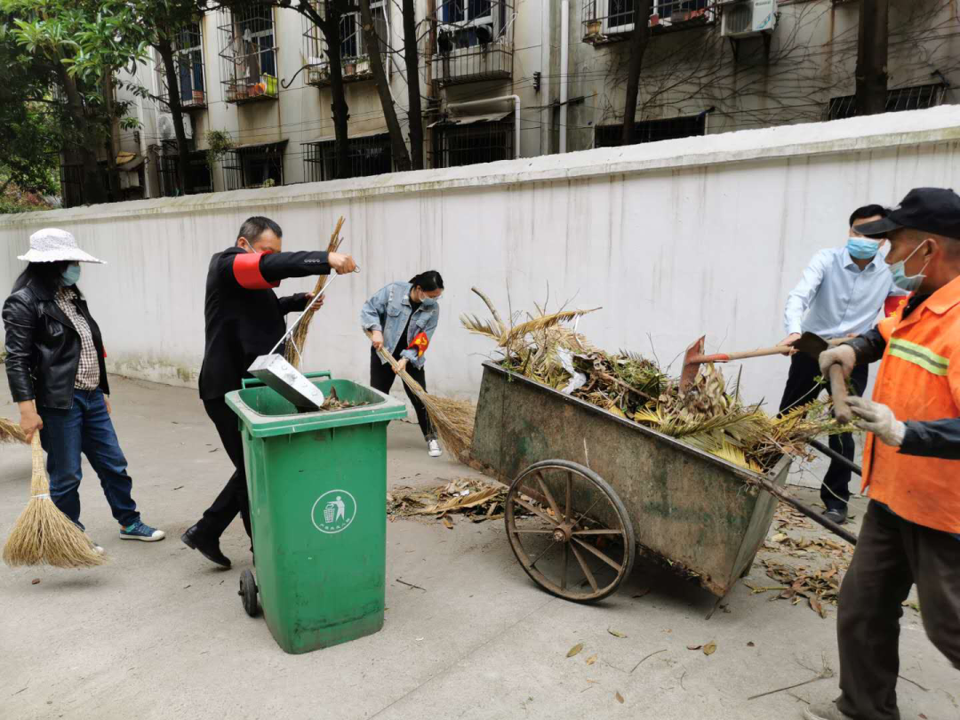 4月20日,印染社区床单小区开展“双创”大扫除活动