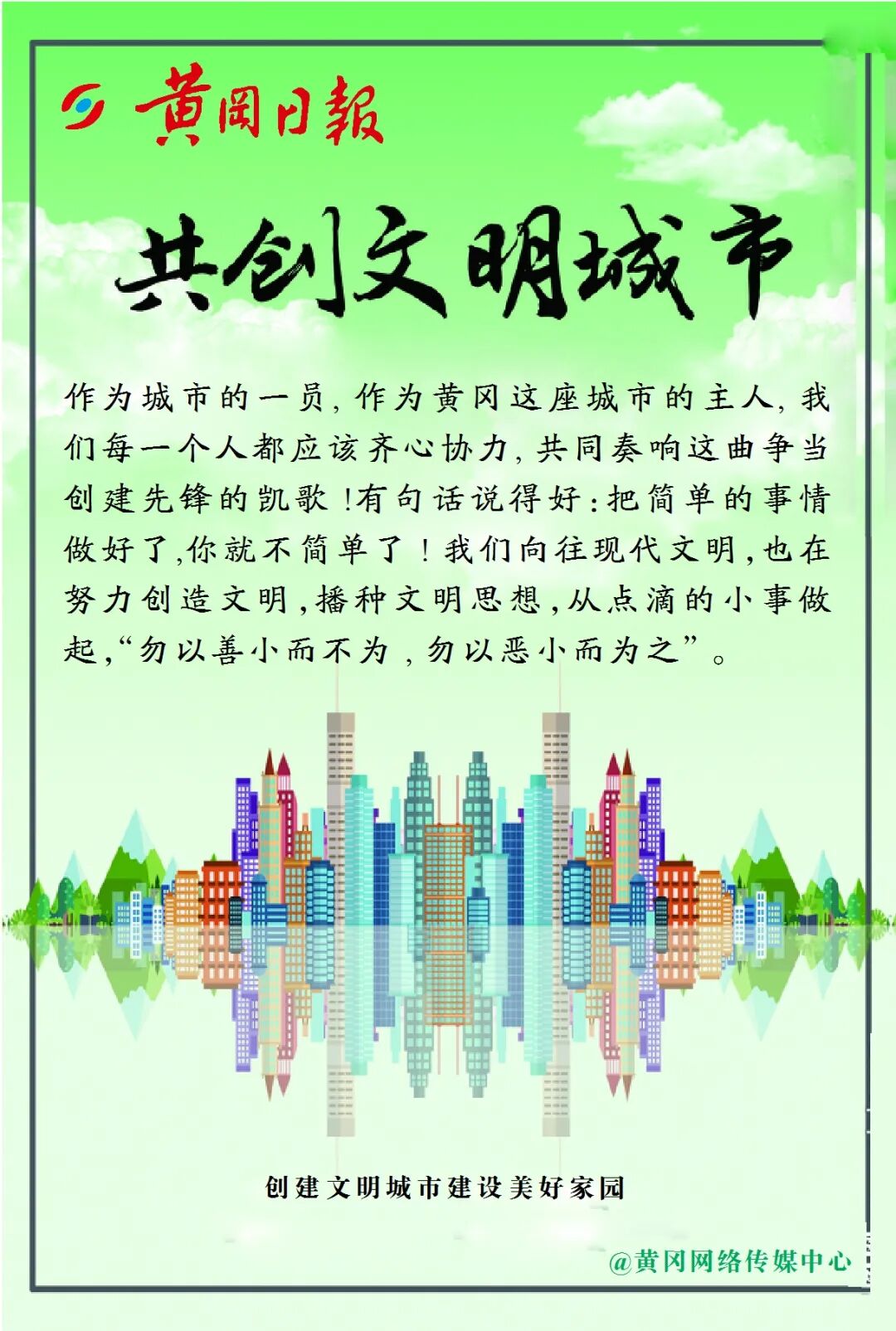 @黄冈所有人:让我们马上行动起来上下一心,携手共进撸起袖子加油干甩开膀子奋力干用我们的热情和真诚用我们的辛勤和汗水让我们黄冈环境更和谐美好让文明黄冈成为我们共同的骄傲