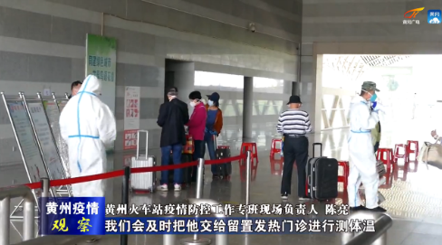 【黄州火车站疫情防控工作专班现场负责人 陈亮】我们这是一个进站口,旁边还有一个留置发热的门诊。当旅客进出站时,如果体温异常,我们会及时把他交给留置发热门诊进行测体温,如果体温超过37.3度,经过登记,我们会报给黄州区人民医院发热门诊进行处理。