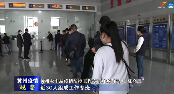 【黄州火车站疫情防控工作专班现场负责人 陈亮】黄州区按照市疫情防控指挥部工作部署,从黄州区交通运输局、黄州区卫健局、陈策楼镇和火车站管委会等单位和部门,抽调工作人员和民兵近30人组成工作专班,设立疫情防控检测点,全力做好防控工作,保障乘客安全,为疫情常态化防控,复工复产复学复市、五一期间群众出行保驾护航。