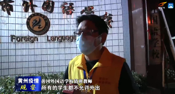 黄冈外国语学校值班教师:所有的学生都不允许外出,老师也是不允许外出。目前学校里面的老师和学生都是相当安全的,都是采取封闭式管理。