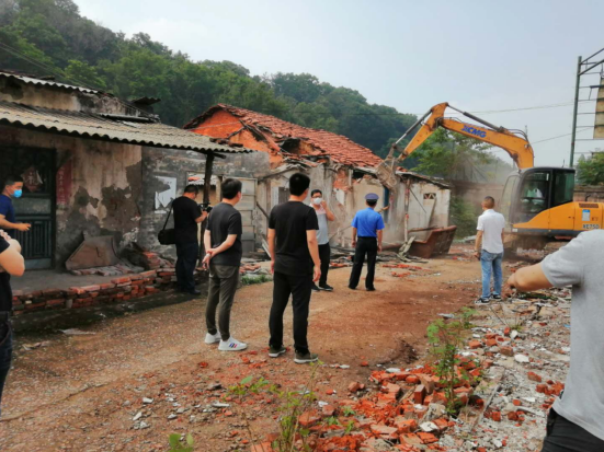 ▲赤壁街道汉川门社区赤壁港沿线11间搭建的历史违建房和10余个乱搭建雨棚进行拆除