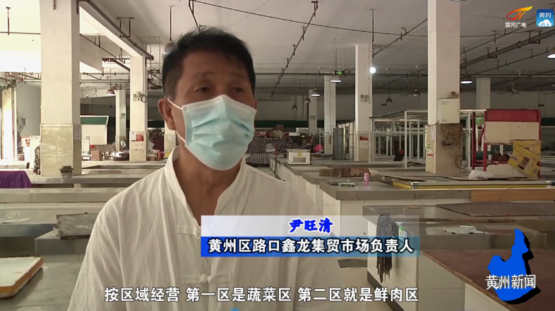 黄州区路口鑫龙集贸市场负责人 尹旺清:集贸市场分了四大区域,蔬菜区,鲜肉区,熟食房、干鲜冷鲜,还有一个自产自销区。
