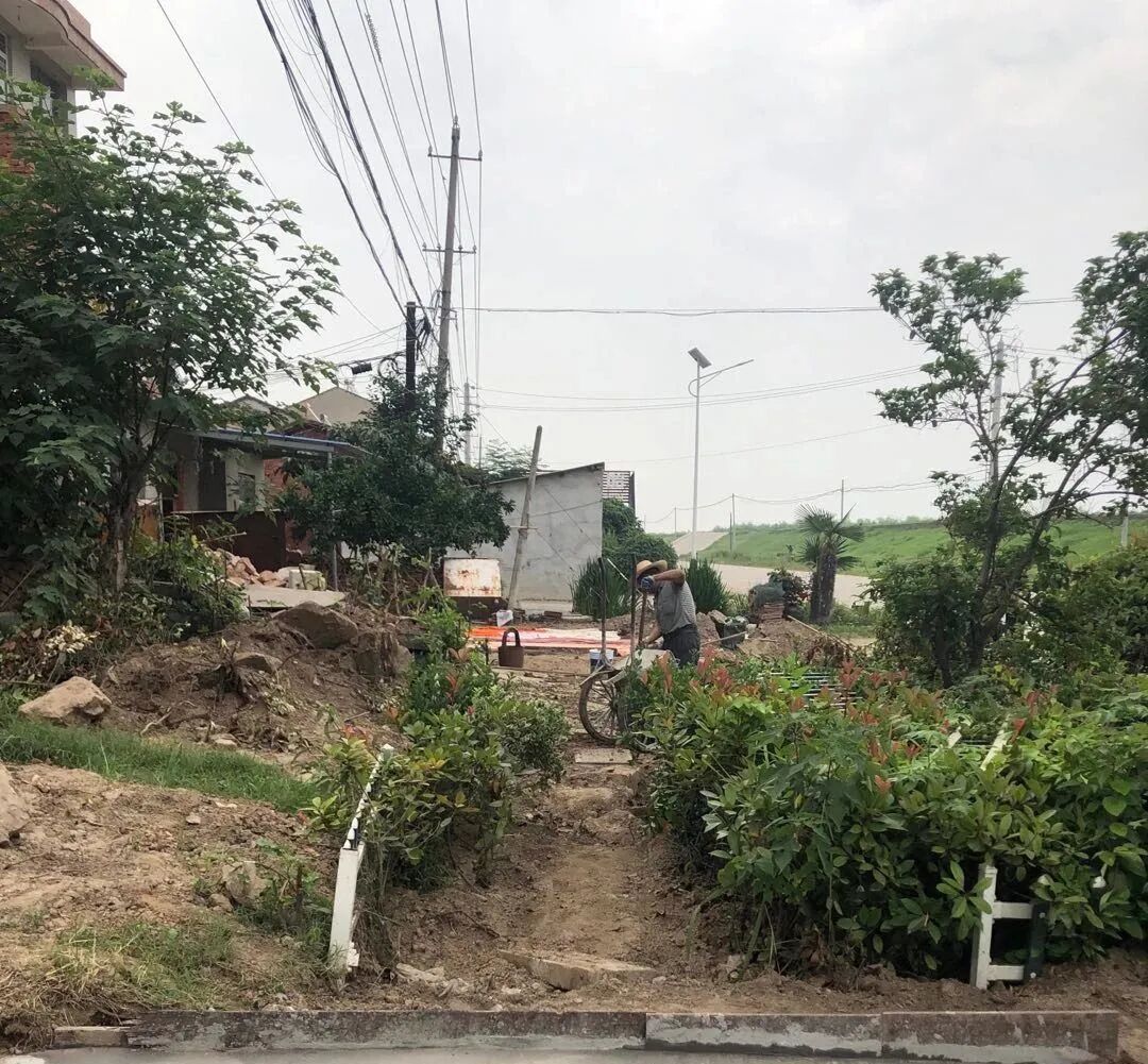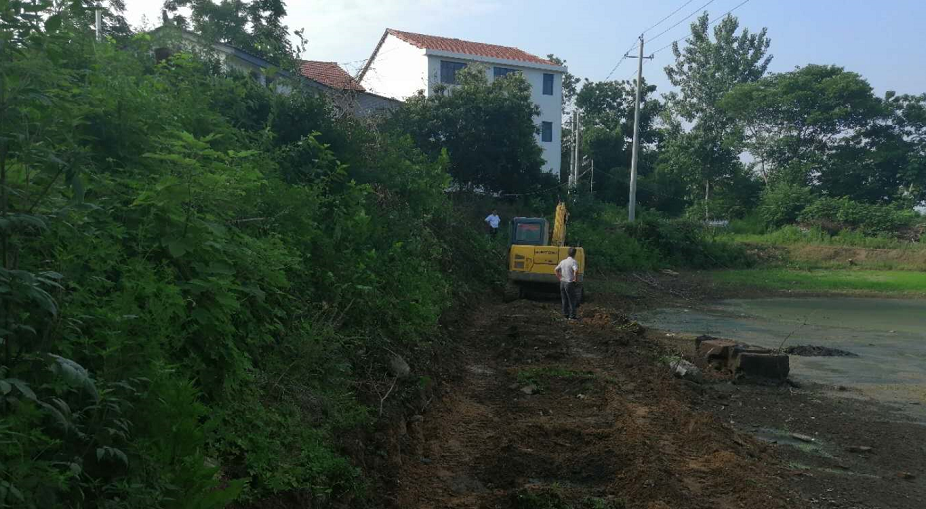 ▲东湖街道汪家墩社区三组进塆路硬化工程正式动工,五组排水管网以及五、六、七组港整治工程继续施工中