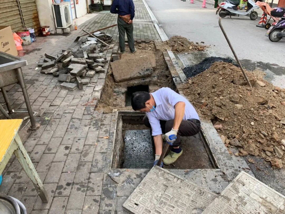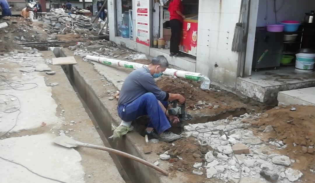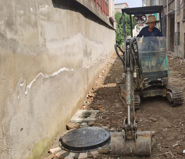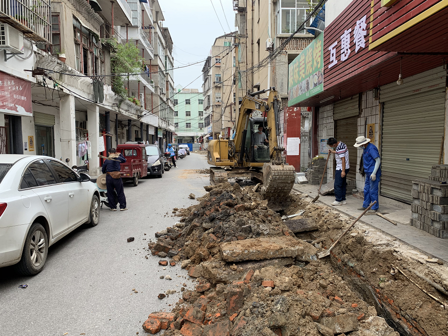 ▲赤壁街道一字门社区背街小巷环境整治工程,贾家街下水道清掏改建进行中
