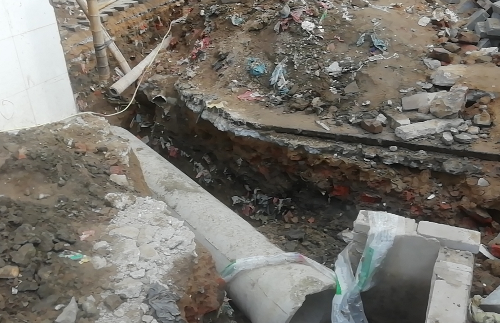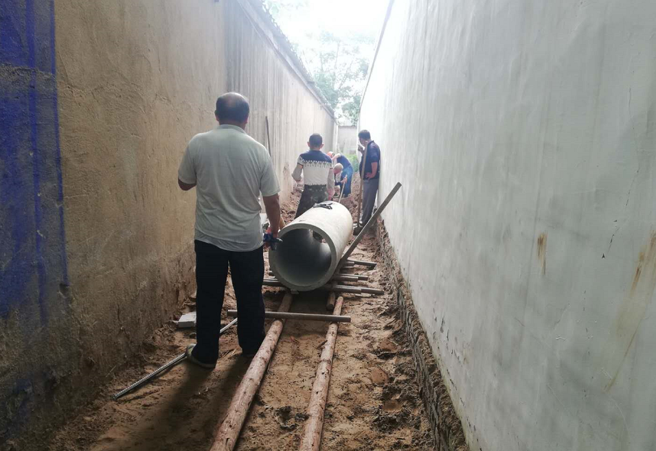 ▲禹王街道望月堤社区西北区下水道,道路硬化项目推进中。