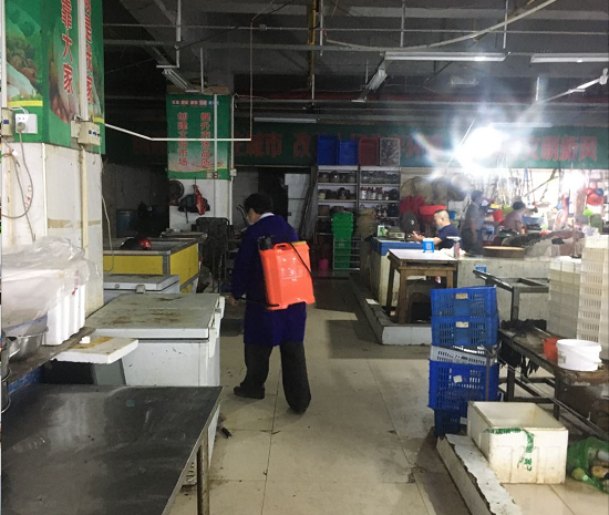 ▲黄州商城市场早晚消杀