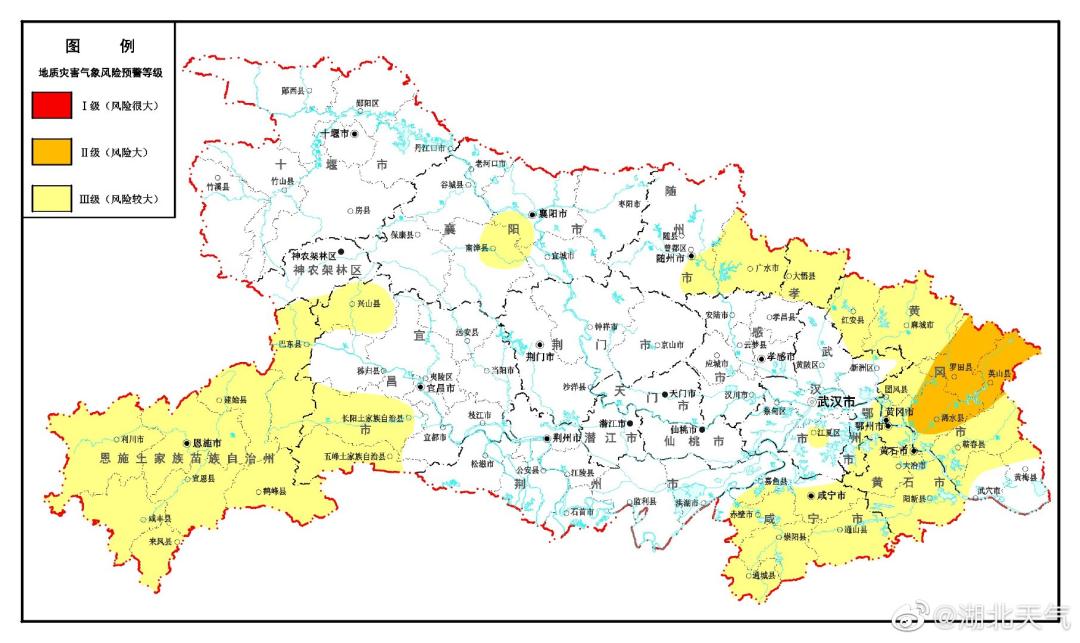 湖北省自然资源厅和湖北省气象局联合发布地质灾害气象风险预警: