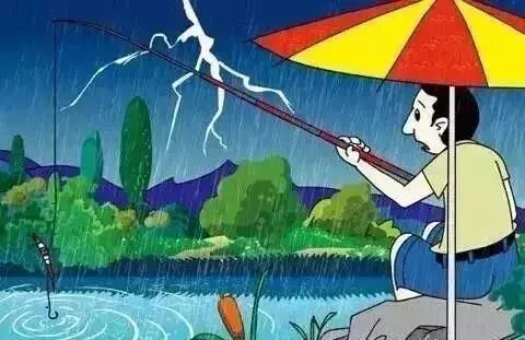 河边钓鱼很危险,鱼竿过长引雷电不在大树下避雨,大型广告要躲避
