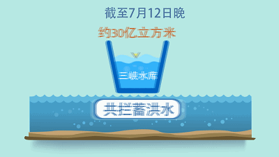 截至7月12日晚,三峡水库共拦蓄洪水约30亿立方米相当于减少了210多个西湖的下泄水量。