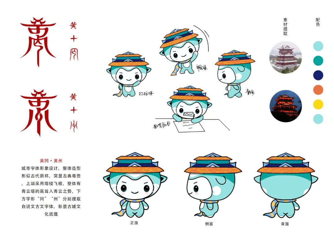 吉祥物“小黄”“小冈”以黄冈市的青山绿水为原型,通过拟人化表现,手中的书卷和毛笔代表了“荆楚诗词之市”“中国书法城”的称号,充分体现了市区城市特色和文化内涵。形象健康积极,具有较强感召力,亲和力。后期可制作表情包,动作图及延展应用。