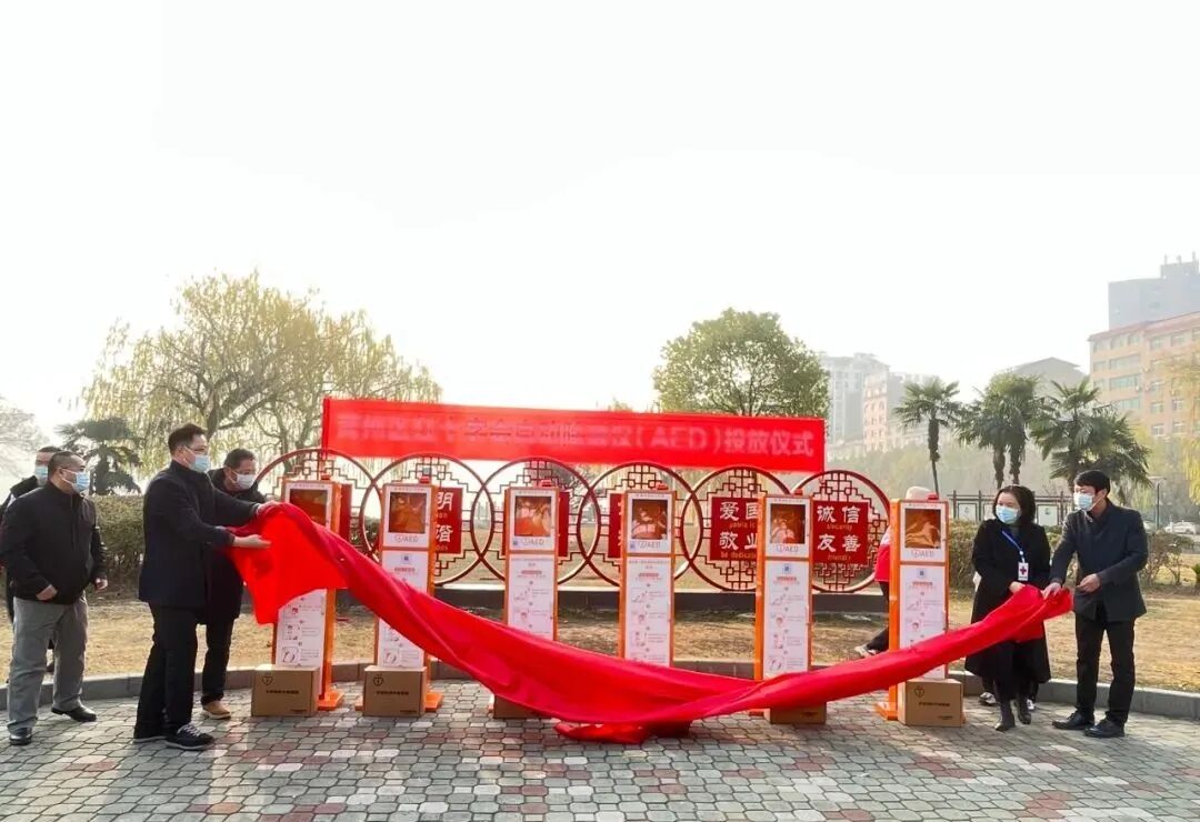 1月6日,黄州区贯彻落实市政协副主席、区委书记夏志东听取区政协工商联界别讨论时反馈建议,在青砖湖广场举行自动体外除颤仪(AED)投放仪式。副区长、区红十字会会长徐晓燕宣布11台AED正式在黄州区公共场所投放,并为自动体外除颤仪(AED)揭幕。区政协副主席邓建军出席活动,湖北安一辰光电科技有限公司、区卫健局、区教育局和各AED投放单位相关负责人参加活动。