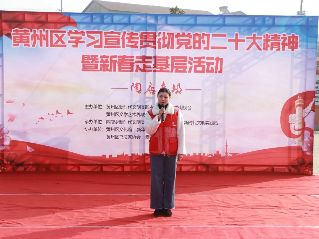“雄赳赳,气昂昂,跨过鸭绿江。保和平,卫祖国,就是保家乡……”黄州区“初心”志愿宣讲队成员梁晶声情并茂为大家讲述“中国好人”“荆楚楷模”陈世礼的故事,把身边人的故事搬上舞台;孙婉琴现场宣讲党的二十大精神,传达党的最新理论。