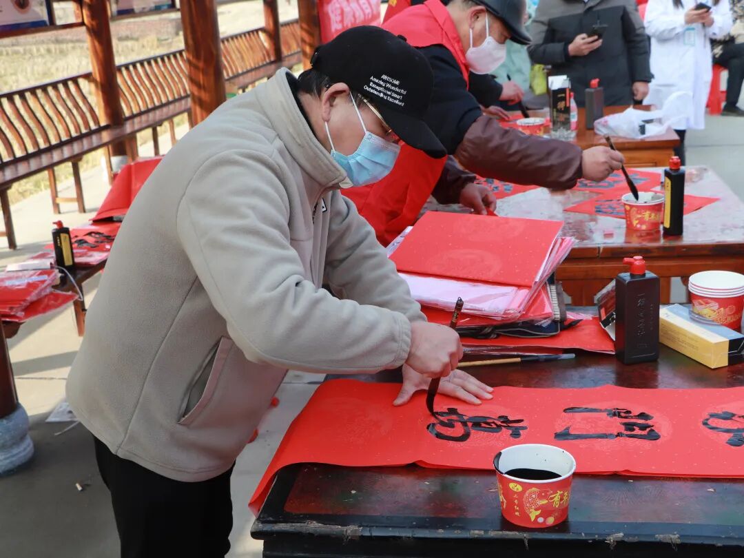 一幅幅散发着清新墨香的春联、福字展现在大家的眼前,喜庆的节日氛围油然而生,群众纷纷排起队,争相邀请书法家为自己写上一副春联。