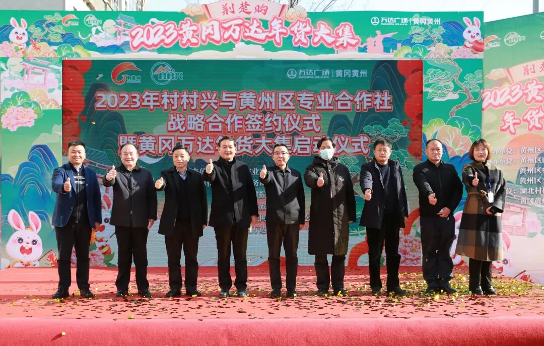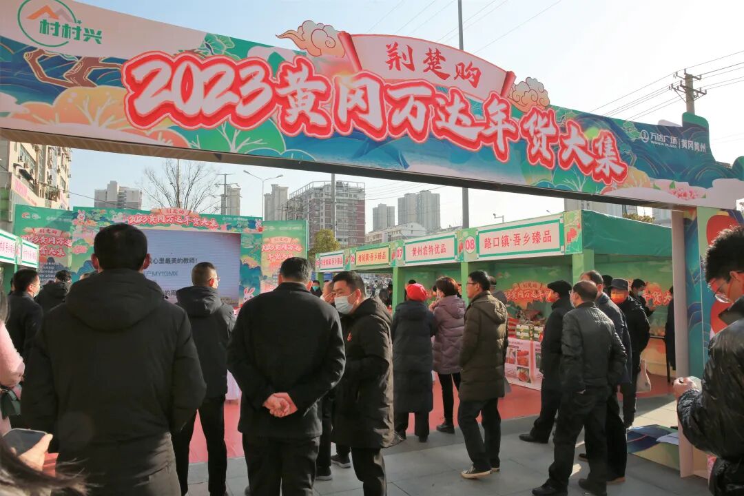 随后,市、区领导和嘉宾共同启动村村兴·万达年货大集开幕仪式,与群众一道参与年货大集,共同感受黄州本地的优质农产品和集市的热闹氛围。