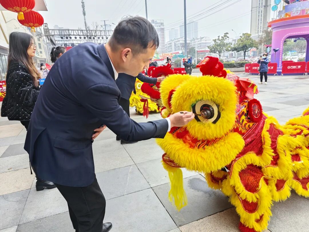 醒狮仪式完成后,舞狮队还进入场内巡游,为各入驻企业、单位、工作人员送上开年大红包,祈愿各商户、个人在新的新年里生意兴隆、财源广进、身体健康、万事顺意。