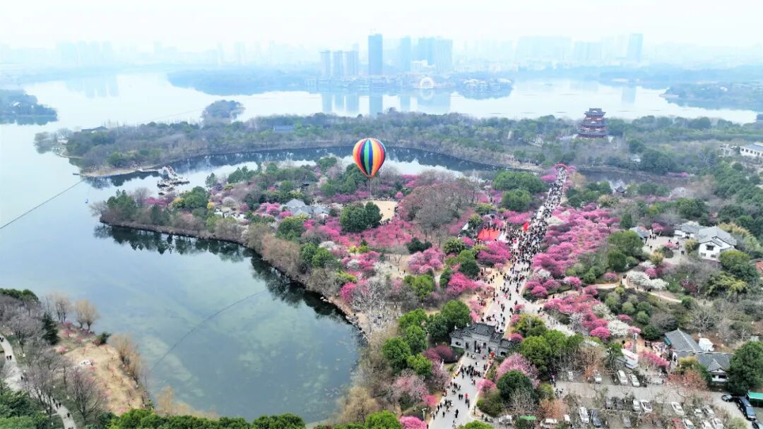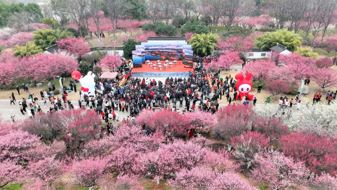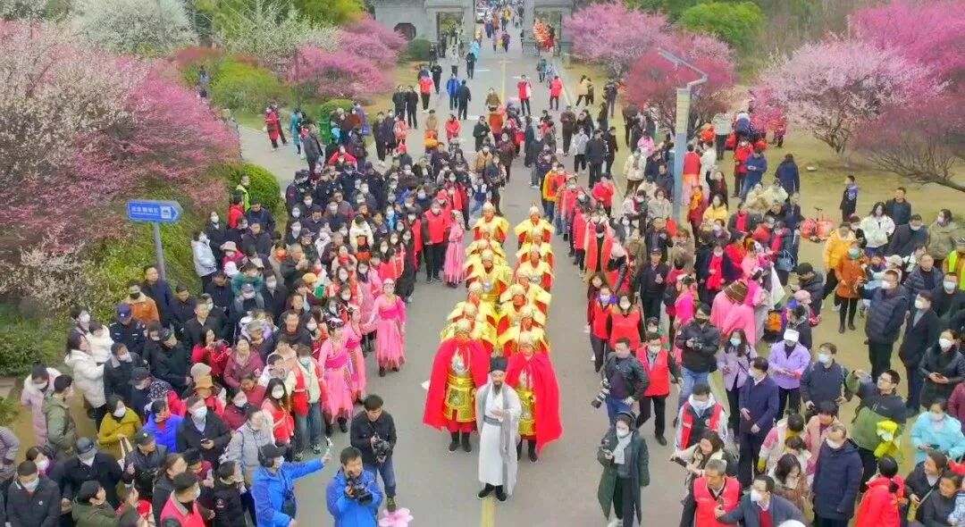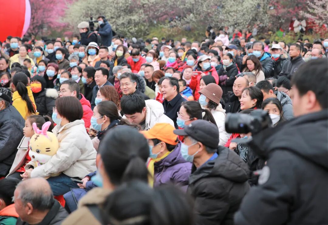 东风起,梅涛舞;暗香来,万众喜。2月18日,在遗爱湖红梅傲雪景区内,市民摩肩接踵,笑语盈盈,由东坡庙会筹委会主办的东坡庙会2023花季·黄州梅开园仪式盛大开幕。