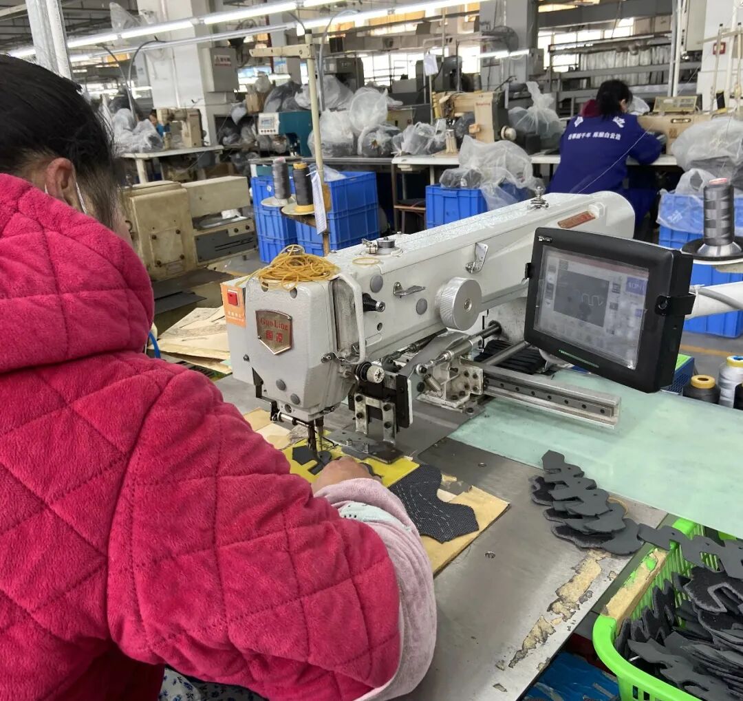 为了提高生产效率,鑫威体育不断加大研发力度,对工厂的技术设备进行智能制造升级。一双鞋子从下料到成品,要经过几十道工序,其中打扣工序是较为复杂的一个环节。公司改进现有技术,由传统模式的半自动操作,变成现在全自动的打扣模式,利用电脑操控提高制造效率,大大增加产能。机械的固定化操作,也让产品的品质更加稳定。
