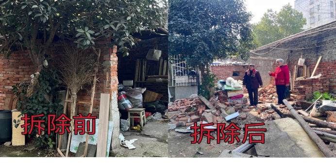 在拆违过程中,做到短时间、快清运、不扰民,拆除一片清理一片,及时帮助居民清理乱堆乱放的杂物。看到原来凌乱的小区一点一点变得干净整洁,社区居民的笑意逐渐浮现在脸上。