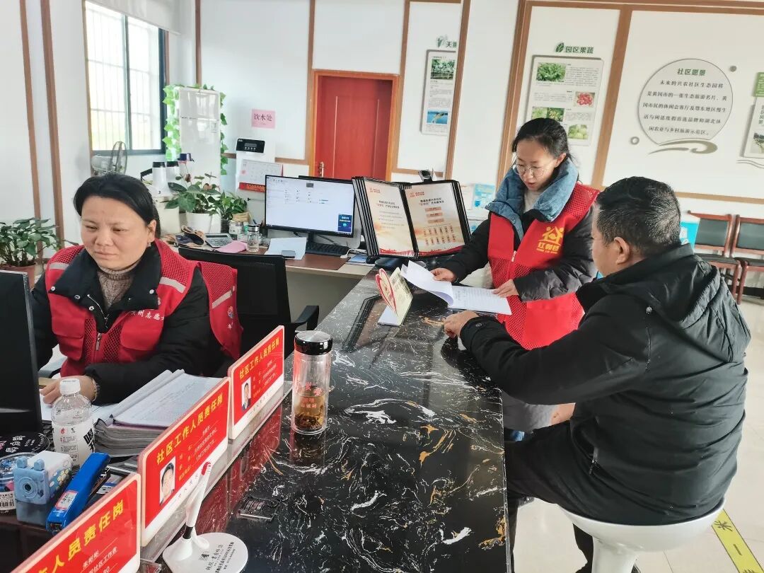 “您好,这上面写的事项,我们都可以在社区就近办,您要是不晓得怎么操作我们可以提供帮代办服务。”2月28日,兴农社区“红邻铛”帮代办队员吴蕾热心地向前来咨询的群众介绍道。