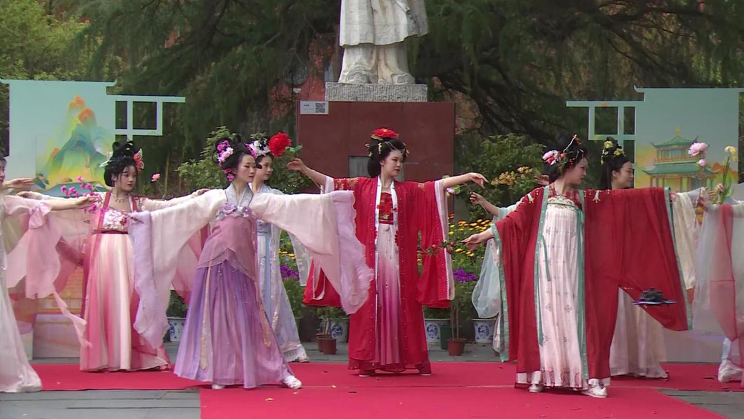 开幕式上,十二花神身着汉服踏春而来,衣袂飘飘,翩若惊鸿,让人宛如穿越古代,置身百花盛宴。活动中,十二花神携手昭君、西施、貂蝉、杨贵妃四大美女载歌载舞,各展才艺。
