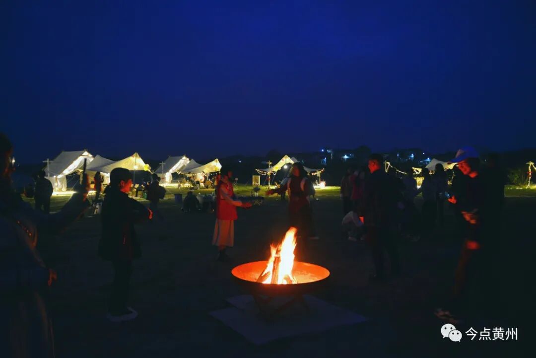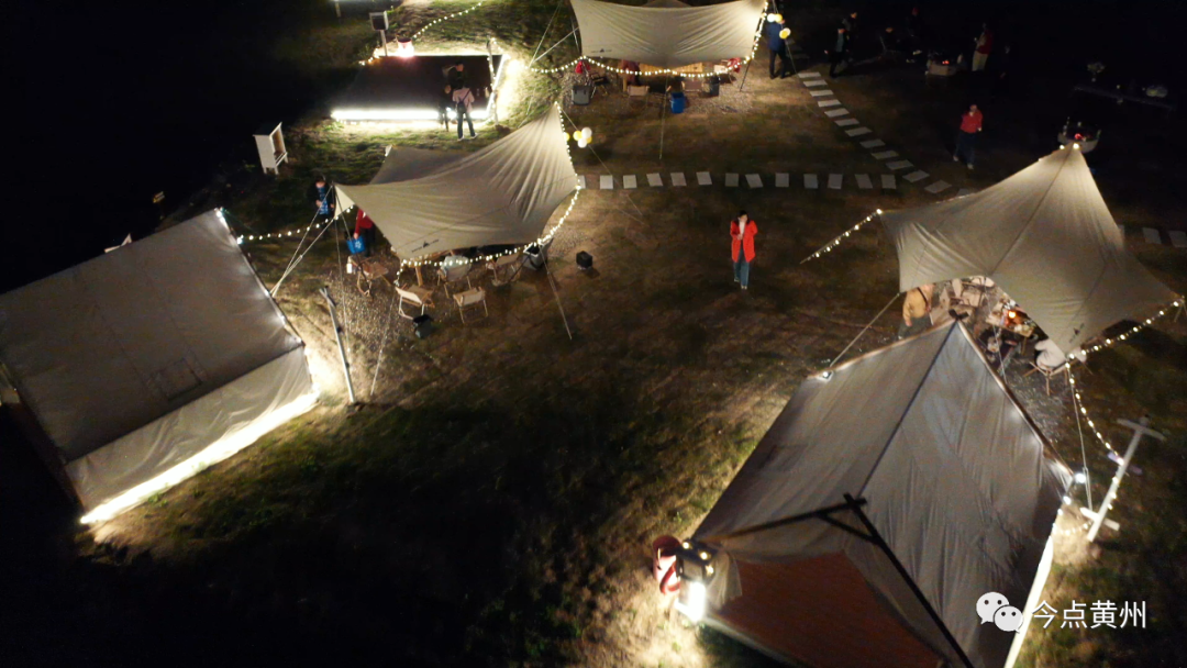 3月31日傍晚,夜幕降临,在黄州区幸福水库旁边的一座露营基地里,帐篷错落有致,灯光闪耀,乡野气息肆意铺撒,三五成群的露营爱好者或忙着烧烤、或坐着品茶,欣赏着春日的美景,享受着乡村休闲的惬意。