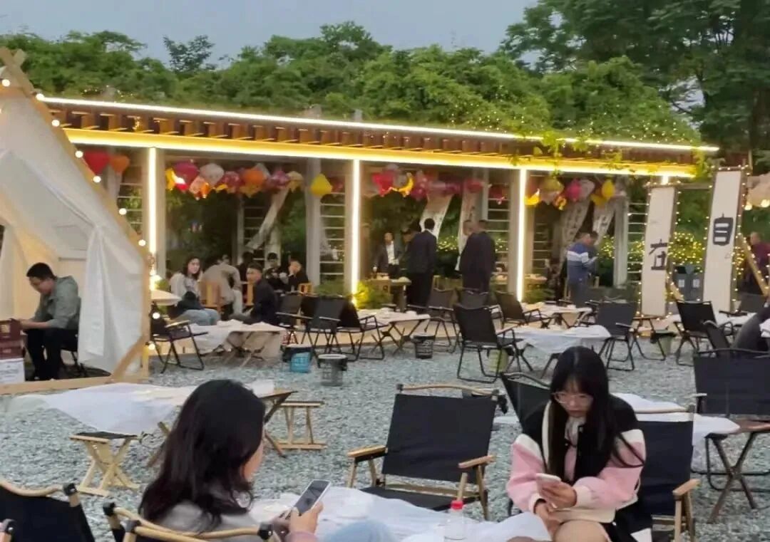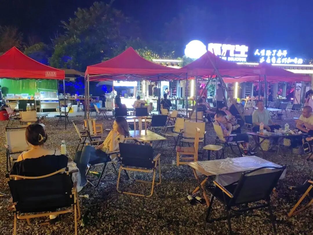 潮流音乐、啤酒烧烤、炫酷灯光门楼、潮玩东坡打卡……5月3日,尽管刚刚下过一场暴雨,但人们依旧兴致不减,广场上、水泥管餐厅、草棚餐厅、集装箱餐厅等依旧人气满满。