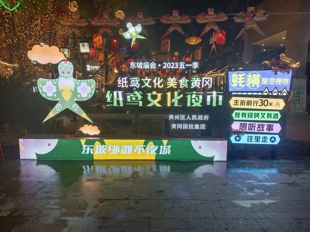 一支支形态各异的风筝乘风扶摇,“筝”奇斗艳,在纸鸢非遗文化中看一场“风筝文化展”。纸鸢文化夜市活将持续到5月4日,欢迎市民朋友来东坡外滩夜逛一次纸鸢文化夜市,尝一份特色美味,享受假日的浪漫。
