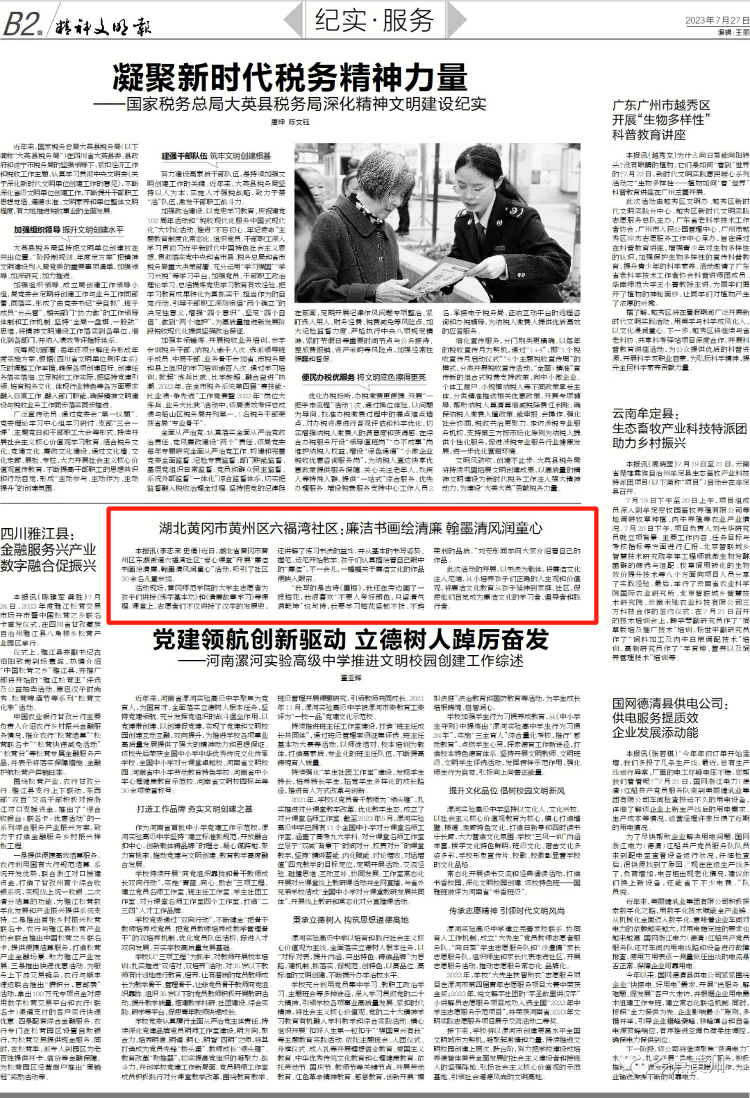 7月27日,精神文明报刊发报道——《湖北黄冈市黄州区六福湾社区:廉洁书画绘清廉 翰墨清风润童心》↓