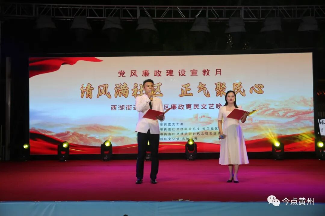 7月28日晚,由西湖街道红卫社区主办的“清风满社区·正气聚民心”党风廉政宣教月文艺晚会在东坡外滩百姓大舞台举行。