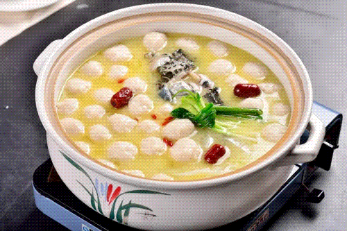 以后,人们为了纪念这个有意义的活动,就继承了每逢欢度节日做鱼圆子的传统。做时将配料与主料搅拌,挤出一个个圆子。清水放圆子,大火煮沸即成,其色如银,形如珍珠,食而香嫩可口,向为宴席上之佳品。