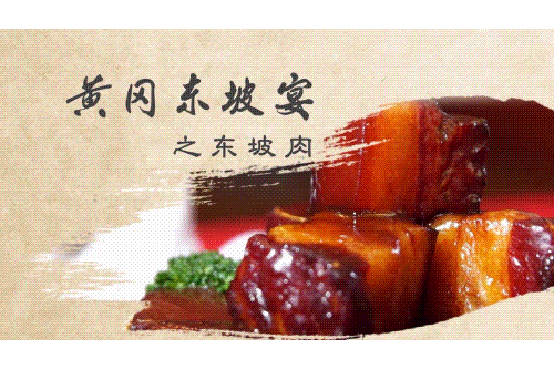 黄州东坡肉系苏轼发明,故名东坡肉。东坡肉用五花肉做主料,每斤肉切成四四方方的八块,先用旺火烧,再用小火焖。色泽酱红,汤肉交融,肉质酥烂如豆腐,入口不油不腻。