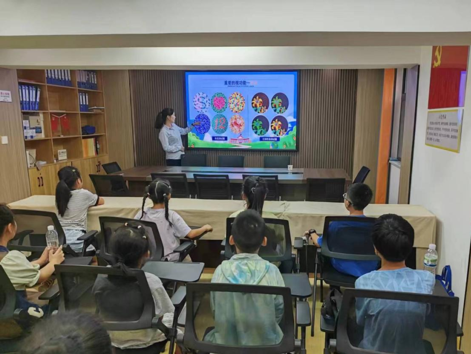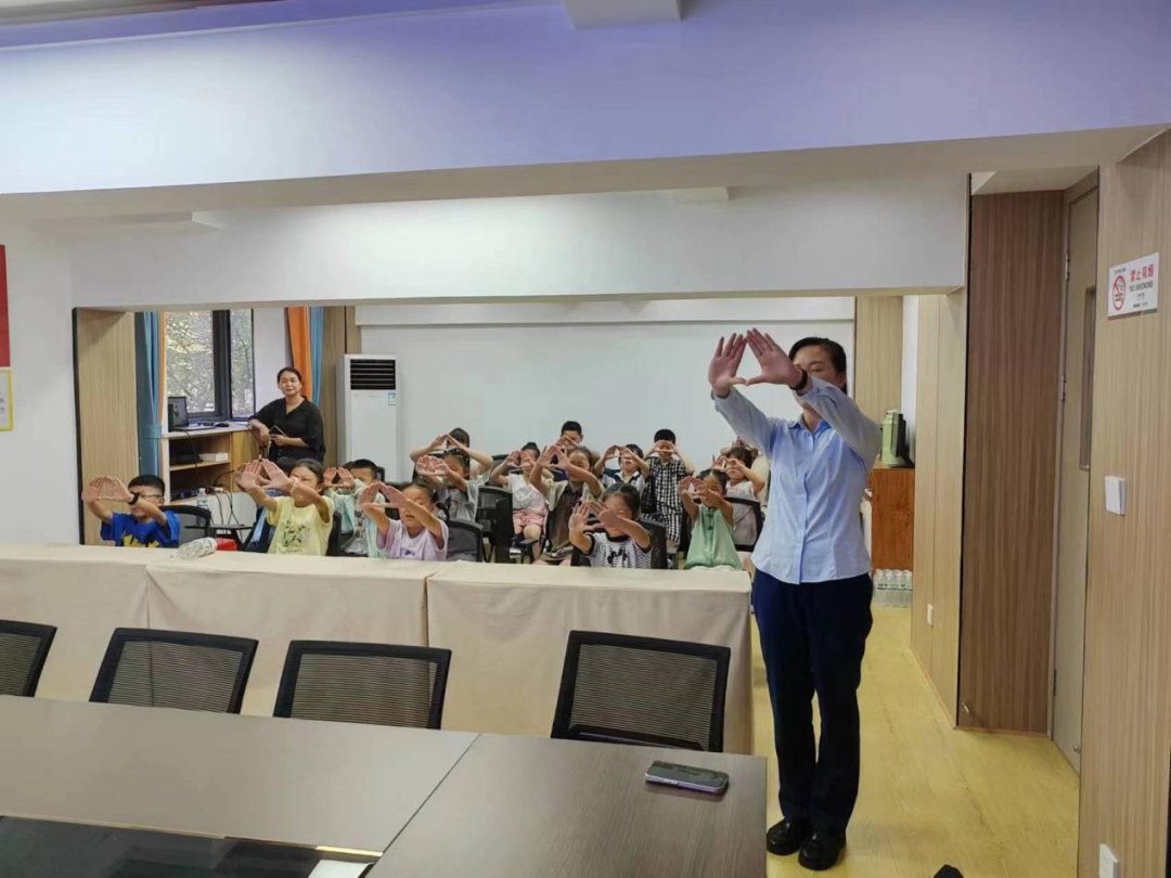 7月22日,在黄州区西湖街道新港路社区爱心课堂上,爱尔眼科医院的医护人员与孩子们一起开展爱眼主题教育活动。