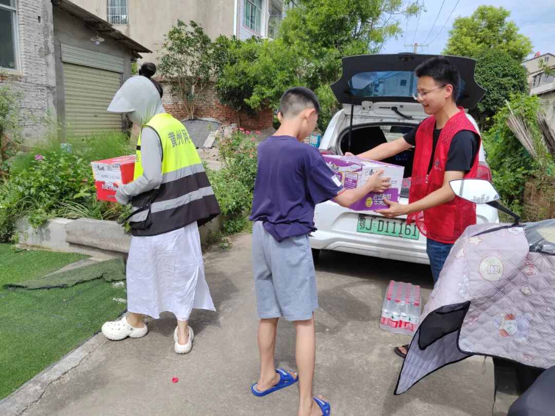 7月20日上午,黄州区东湖街道长圻蓼社区工作人员到社区一组留守儿童石某家中慰问,为其送去八宝粥、牛奶等生活物资和一些课外励志阅读书籍。