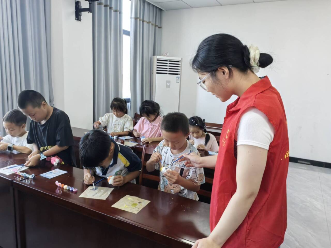 7月23日,黄州区路口镇百丈咀社区爱心课堂开展创意手工活动。志愿者们带领着一群可爱的小朋友,共同踏上了石膏娃娃的奇妙创作之旅。
