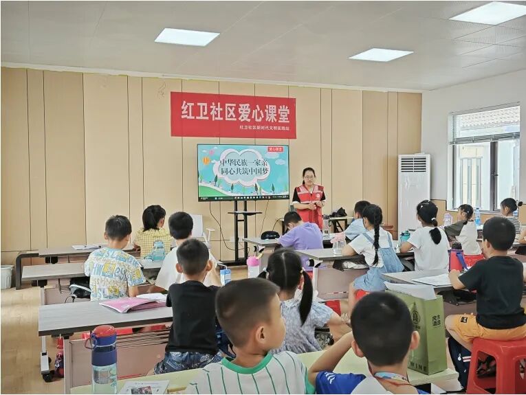 聚焦育人,优化“爱心课堂”课程。“爱心课堂”将暑期课业辅导与兴趣课程相结合,一方面督促辅导孩子们高质量完成暑假作业,另一方面促进未成年人德智体美劳全面发展。在课程设置上,结合孩子兴趣需求,通过链接外部资源和结合志愿者专业特长设计课程的方式,创新设置宣讲类、科普类、文艺类、手工类、文体类等特色课程,包含绘画、唱歌、武术、舞蹈、手工、围棋、乐器、口才训练、文化科普等教学内容,与作业辅导穿插进行,实现室内教育与室外体验相结合,提升课堂吸引力,让孩子们乐于学习、学有所得。